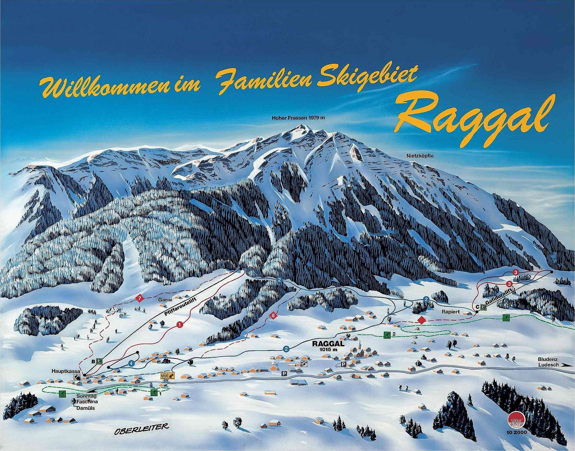 Schianlage mit 3 Schleppliften, in 950 bis 1250 m Seehöhe, sehr preiswert für Anfänger durch die Punktekarte (zahlen je nach Liftfahrten).