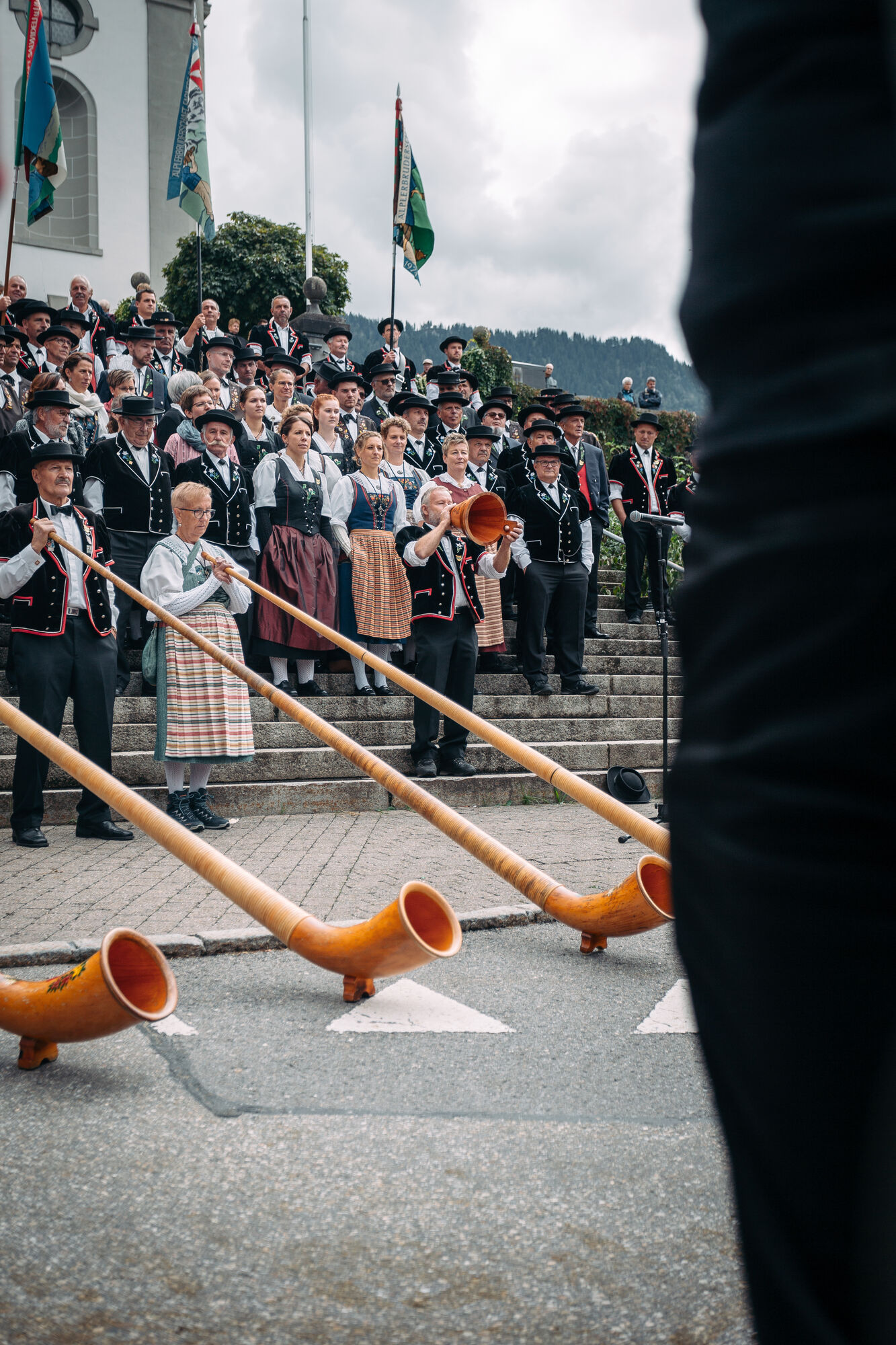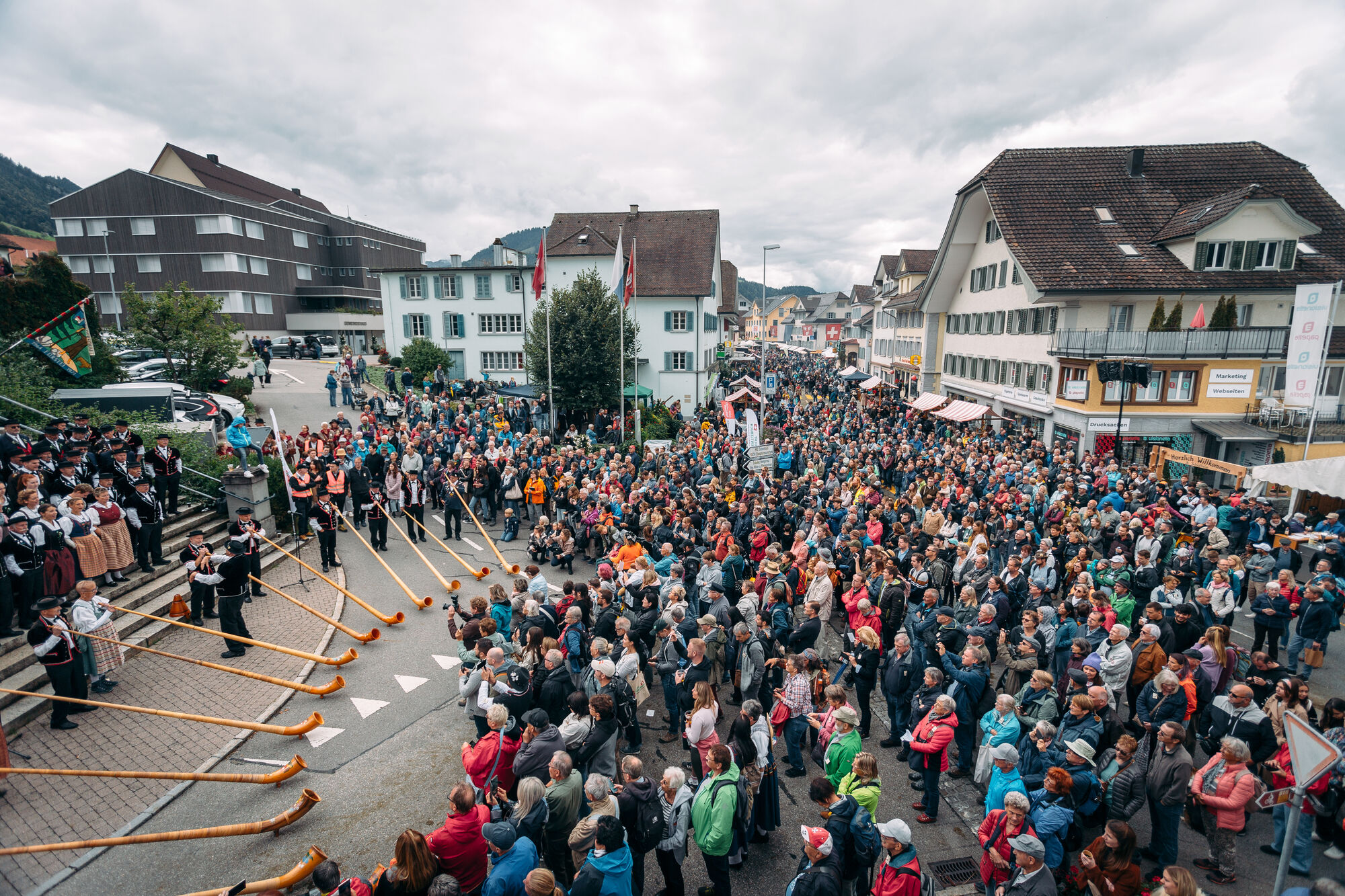 Dichtgedrängt stehen tausende Menschen am Strassenrand im Dorf Schüpfheim und warten gespannt. Viele tragen ein Edelweisshemd oder gar zur Feier des Tages eine Entlebucher Tracht (Frauen) oder den «Chüjer» (die traditionelle Männer-Tracht aus einer rotweiss umrandeten, schwarzen Jacke, die mit Edelweissen bestickt ist). Trachtenfrauen schenken Kaffee aus einem Tornister aus, der Grill am Bratwurststand ist voll belegt und es schwebt ein köstlicher Duft nach Käseschnitten vorbei. An 25 Marktständen werden fleissig Alpkäse und andere Regionalprodukte eingekauft. Auf der autofreien Strasse haben sich mehrere Jodlerclubs verteilt, die mit urchigen Liedern die Zeit vertreiben. Zwischendurch erklingen die Klänge der Alphornvereinigung oder die Kindertanzgruppe Schüpfheim hüpft ein fröhliches Tänzchen. Doch dann plötzlich horchen die Leute auf, spitzen die Ohren, alle Blicke gehen Richtung Sörenberg. Grollend wie Donner klingt es in der Ferne, sie kommen!