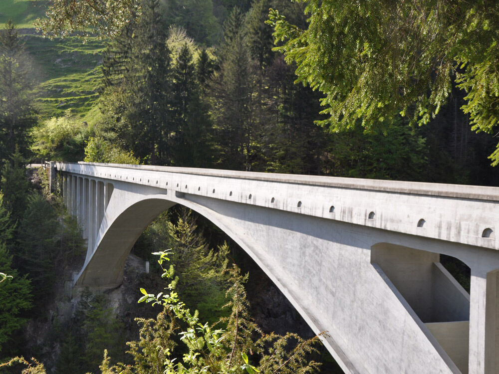 The Salgina-World-Monument Bridge makes up the main item of the connecting road from Schiers to Schuders. With an elegant bow it crosses the gorge of Salgina in a height of 90 metres.