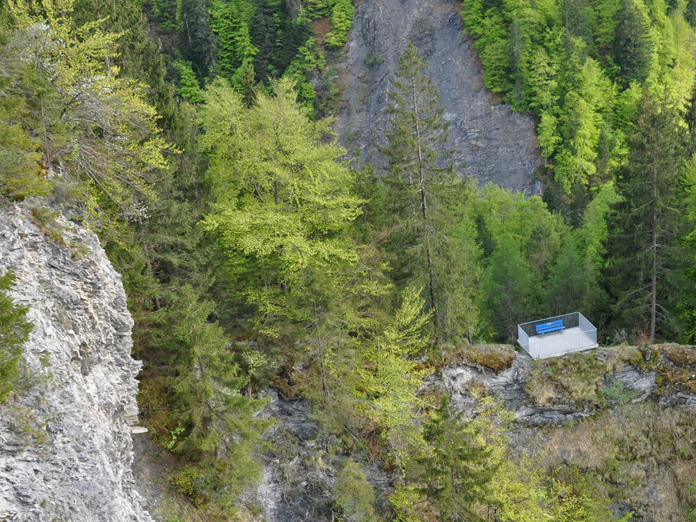 This round trip starts at the 'Chalchofenhütte' in the Schraubachtobel. The historic path is signalled right from the station Schiers and leads you from the cabin within an hour round the Salgina-World-Monument Bridge back to the starting point. The ascent to the panoramic vantage point is on the right side of the gorge. The short detour to the platform is signalled and is definitely worth the few additional metres, because from there the bridge presents itself from a special angle. After having taken a number of photos you continue climbing up to the bridge. The view from the bridge down to the gorge is simply breathtaking. The gaze roames 90 metres down before you can recognize the Schraubach deep down. You might dare to make a detour underneath the bridge which is rather impressive. On the right of the bridge the trail takes you back in the direction of Schiers.