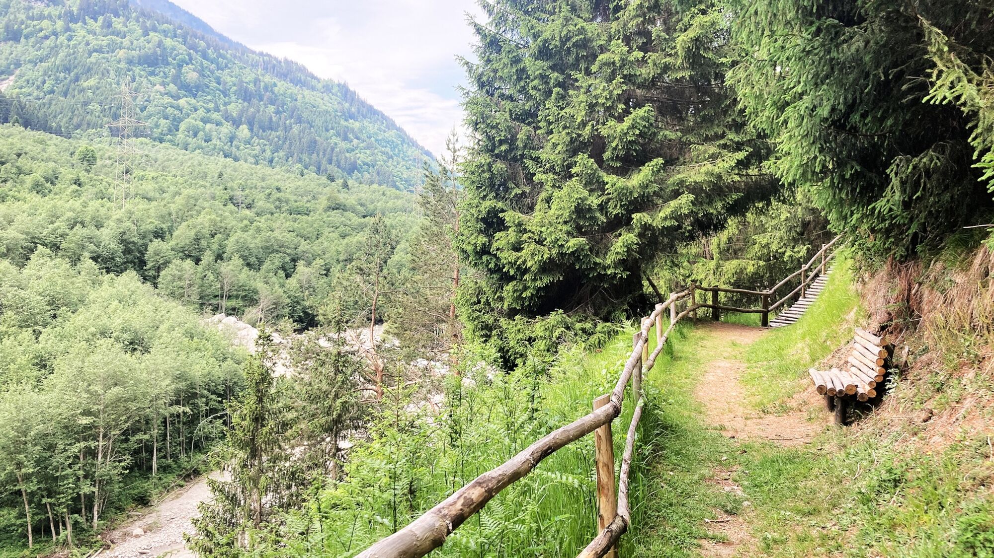 The hike begins at the bridge over the Rhine at Cumpadials and takes you along the right bank of the Rhine towards Disentis. Once you have left the nature trail behind you, the spectacular part begins. The section built with logs was completely rebuilt in 2021 to avoid the slippery right bank of the Rhine. It zigzags up to the highest point and then down through a moss-covered path to Grappa Grossa (large stones) and on to the hydroelectric power station at the foot of the wild Russeinertobel. From here you have a spectacular view up to the three bridges of the Val Russein. You then cross the Rhine bridge at Pardomat. On the other side of the river, the trail leads you along the side road back to Pardomat Dado. You cross the alluvial forest of the wild “Darguns” (torrent) Dadens and Dado and return to the starting point via the hamlet of Falens.