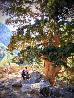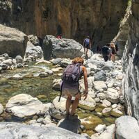 Vom Eingang der Schlucht in der Hochebene (Xyloskalo) bis hinunter ans Meer (Agia Roumeli) an einem Tag. Trotz der touristischen Erschliessung absolut empfehlenswert. Achtung: Ticket für die Fähre am offiziellen Schalter in Agia Roumeli kaufen und nicht dort wo man das Eintrittsticket für die Schlucht kauft. Dort wird einem ein Ticket für ein anderes Boot verkauft das früher losfährt und weit vom Ort Agia Roumeli ankert.