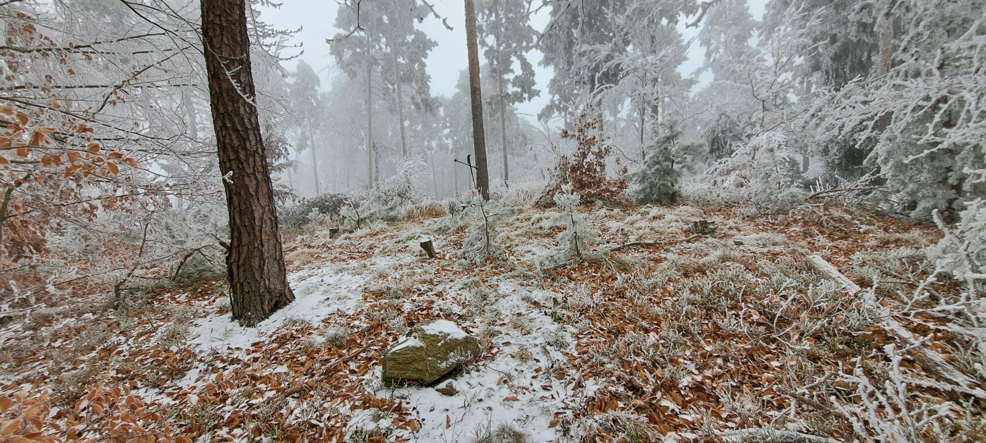 Auf der Forststraße weiter bis zur etwas offeneren Wegkreuzung zum zweiten rechts wegführenden Forstweg. Auf diesen zum Pemexel mit den vielen annähernd gleich hohen Gipfel. Bei der Tafel Pemexel und den Wegschildern ist er wahrscheinlich nicht.