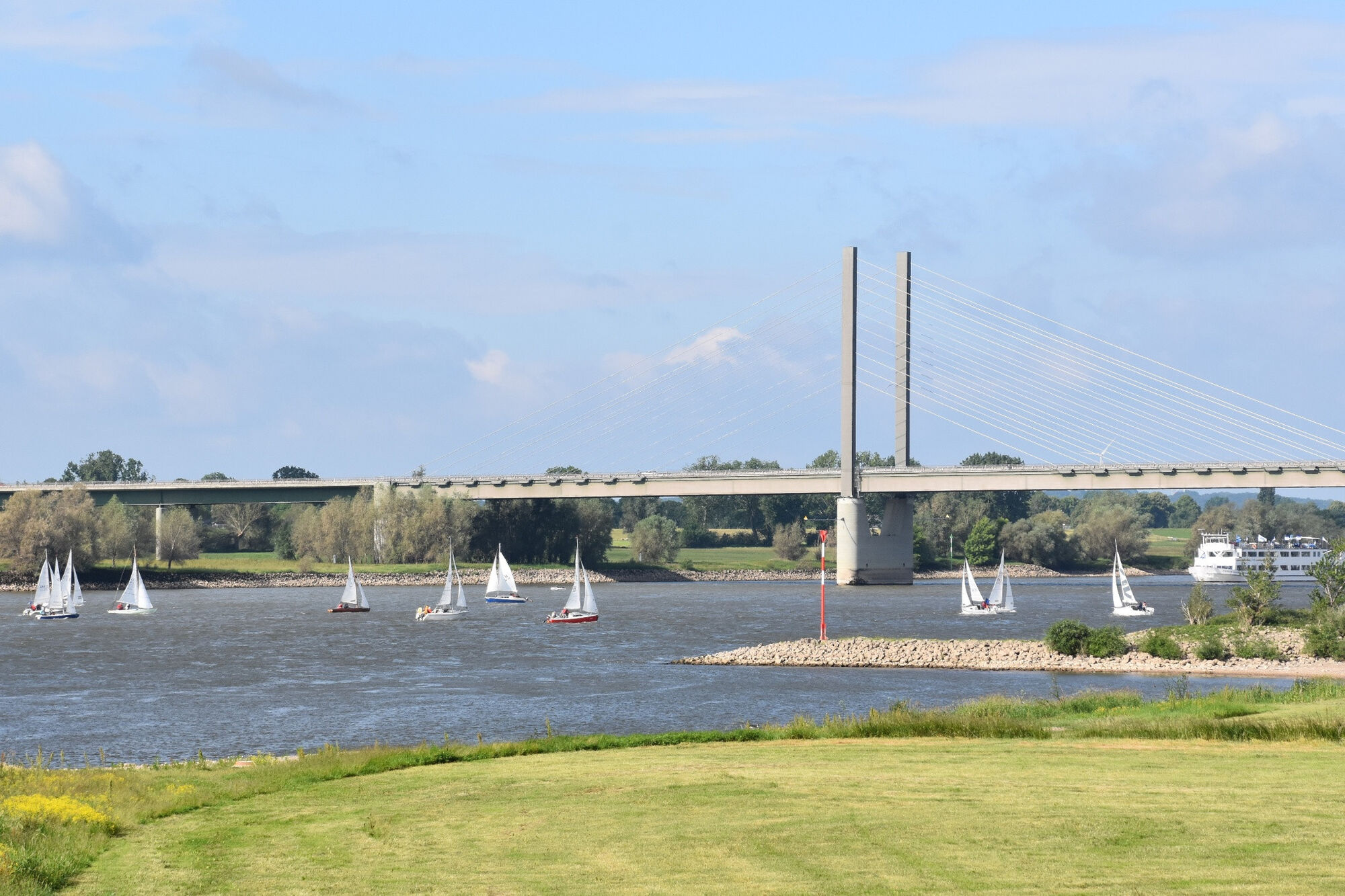 Die regionale Radtour "Zwei Brücken" nimmt ihren Ausgangspunkt in Rees und verläuft flussaufwärts in Richtung Wesel. Dort ermöglicht eine moderne Brückenkonstruktion die Querung des Rheins. Anschließend...