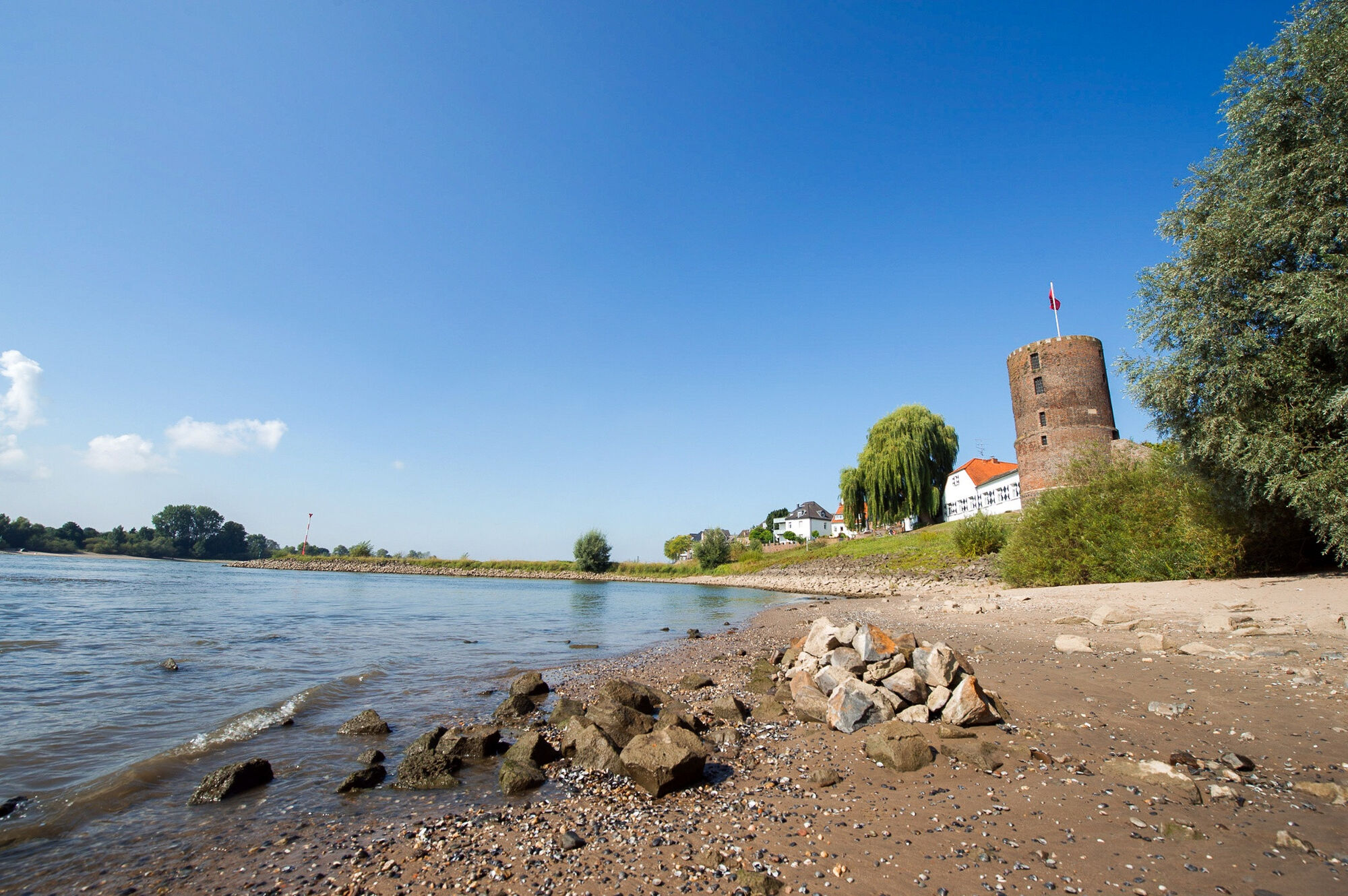 Wenn Sie in Rees verweilen, flanieren Sie über die fast 1.000 m lange Rheinpromenade. Sie zählt zu den schönsten Rheinpromenaden Deutschlands. Von hier aus haben Sie die Möglichkeit, eine Schiffstour auf dem Rhein zu machen. Sehenswert sind auch das „Koenraad Bosman Museum“ (Kunst- und Stadtgeschichte), der Skulpturenpark (ganzjährig kostenfrei geöffnet), der Planetenweg (Planeten des Sonnensystems im Maßstab 1 : 1000.000.000), die Kasematten (feuerfeste Geschützkammern) oder genießen vom Mühlenturm (Zutritt kostenlos) den Blick über den Rhein und die niederrheinische Landschaft.