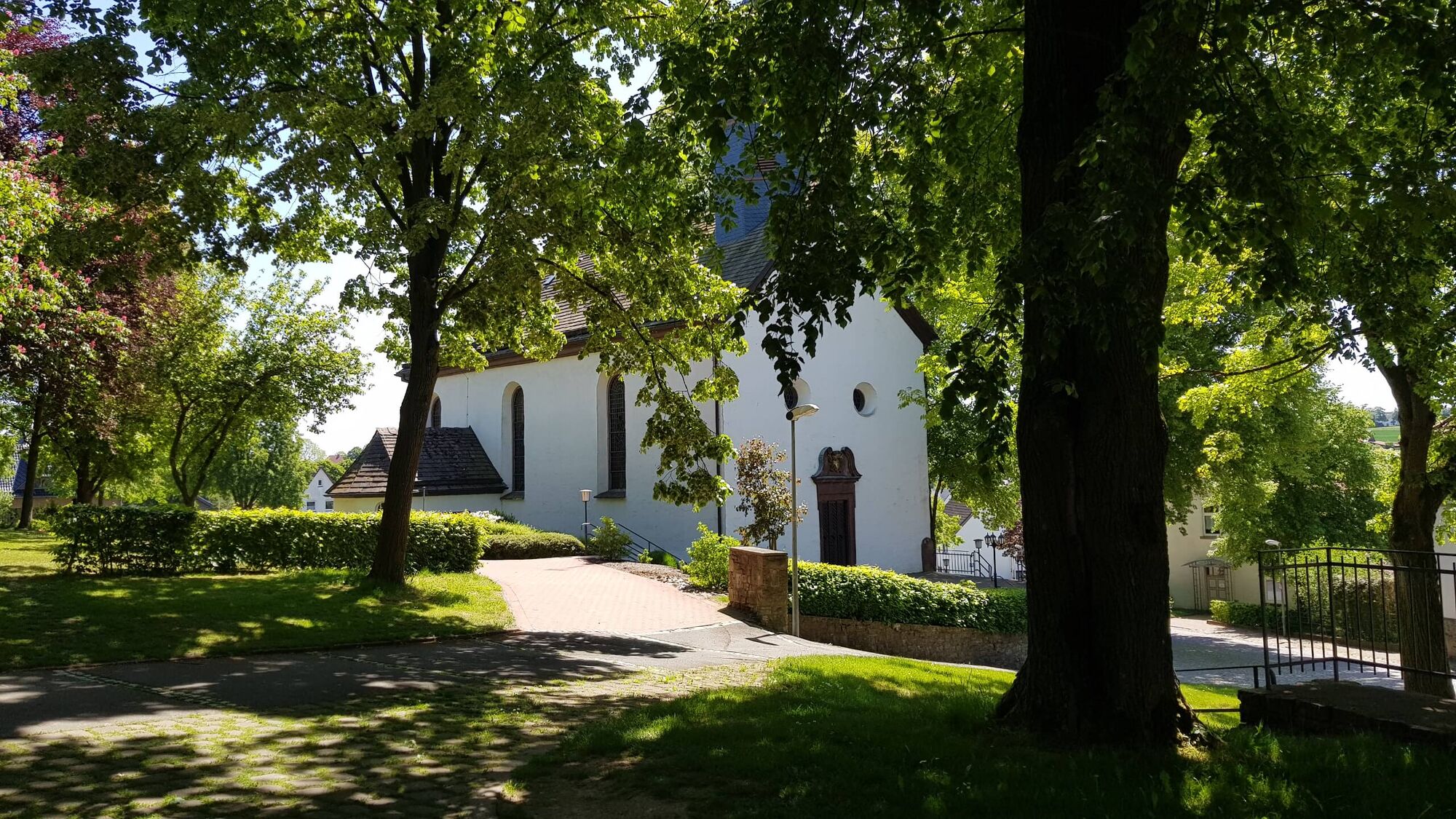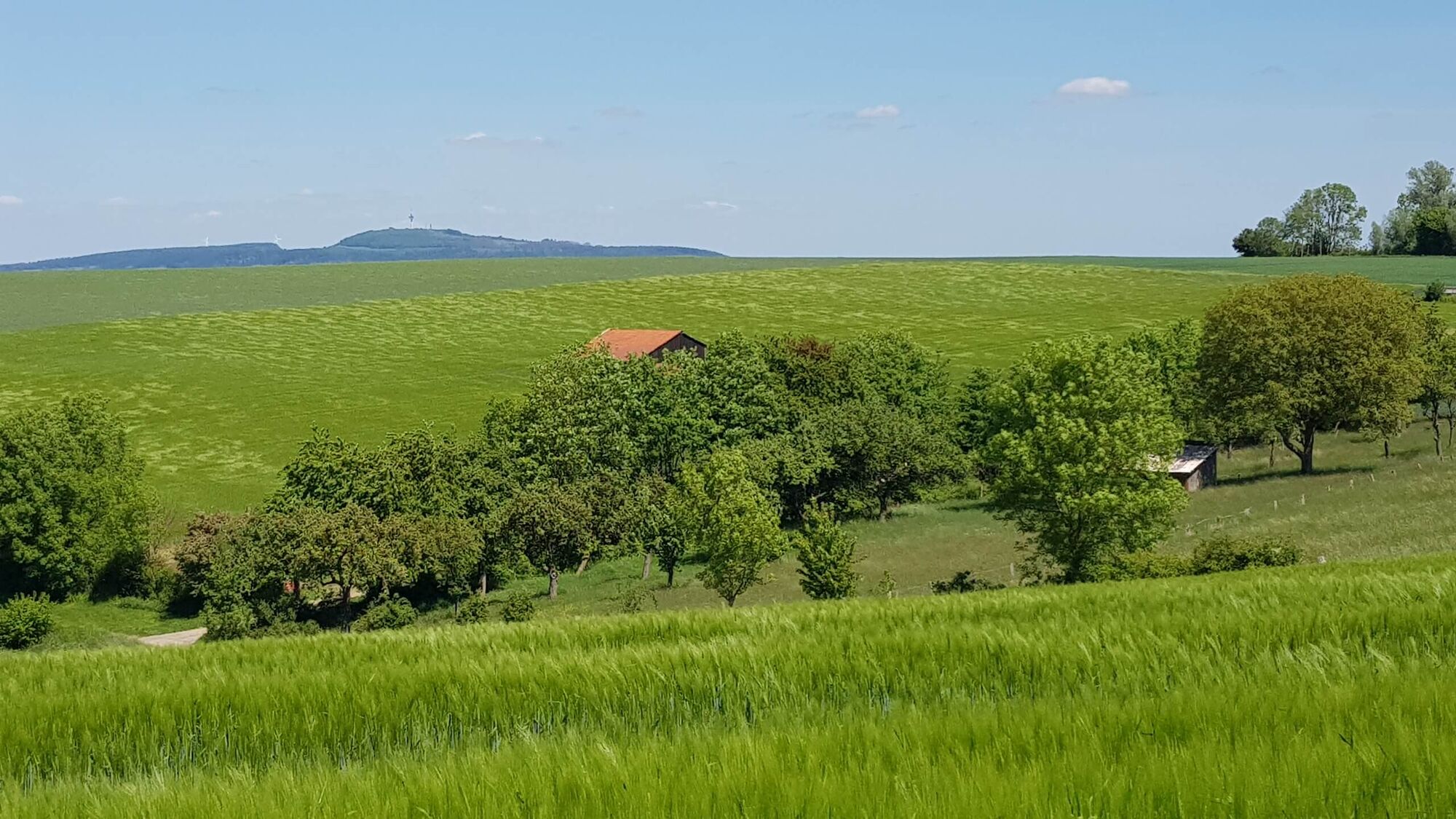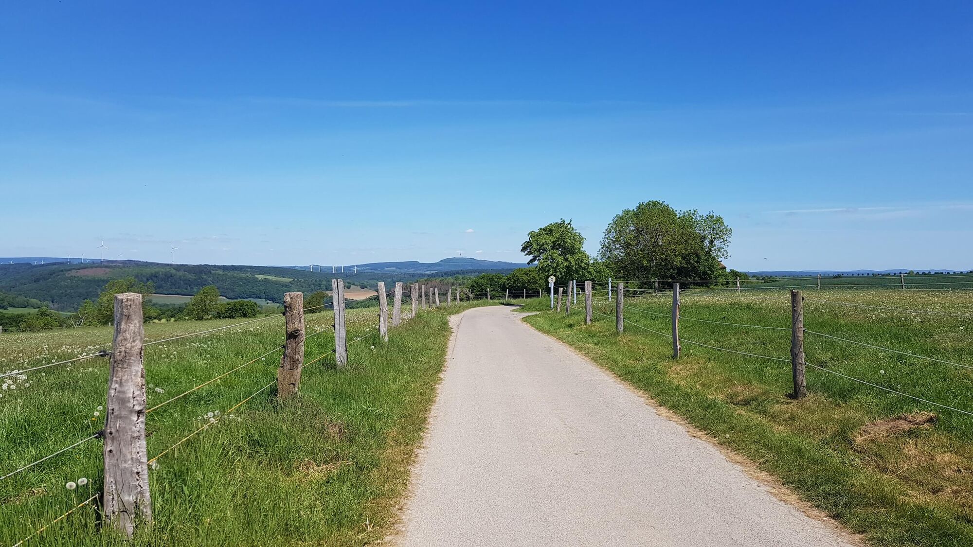 Danach halten Sie sich links und radeln aus der Ortschaft heraus auf die Bosseborner Hochebene. An der Gabelung halten Sie sich links und ca. 200 Meter später biegen scharf nach rechts ab. Durch saftige Wiesen und Felder folgen Sie der Straße und fahren an deren Ende nach links um bei dem kleinen Waldstück wiederum nach links zur Heiligenbergkapelle abzubiegen. Leicht bergab wenden Sie sich am Ende der Straße nach rechts um kurz danach an der kleinen Kirche anzukommen.