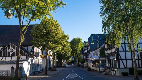Bleiben Sie auf dem E2 und überqueren Sie die L519, danach wandern Sie mit dem E2 links in Richtung Eslohe. Sie erreichen das Wohngebiet von Eslohe und biegen rechts in die Kupferstraße ein. An der nächsten Möglichkeit biegen Sie links in den Parkweg ab, welcher Sie bis zum Ende folgen. Hier wenden Sie sich nach links. Die Hauptstraße bringt Sie zum Esloher Busbahnhof.