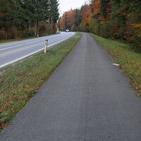 Die Hauptstrasse überqueren und dann links am Radeweg weiter gehen