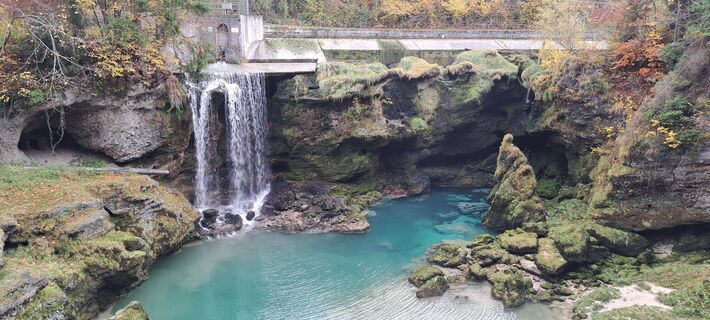 Der erste Halt, nach ein paar Metern, ist schon der Traunfall