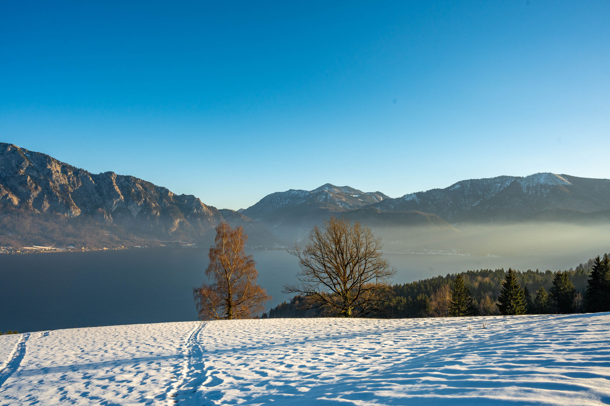 Der Rückweg erfolgt entweder über die gleiche Strecke oder man wandert weiter bis Unterach. Von hier kann man entscheiden ob man mit dem Bus oder dem Schiff die Rückfahrt nach Nußdorf antritt.