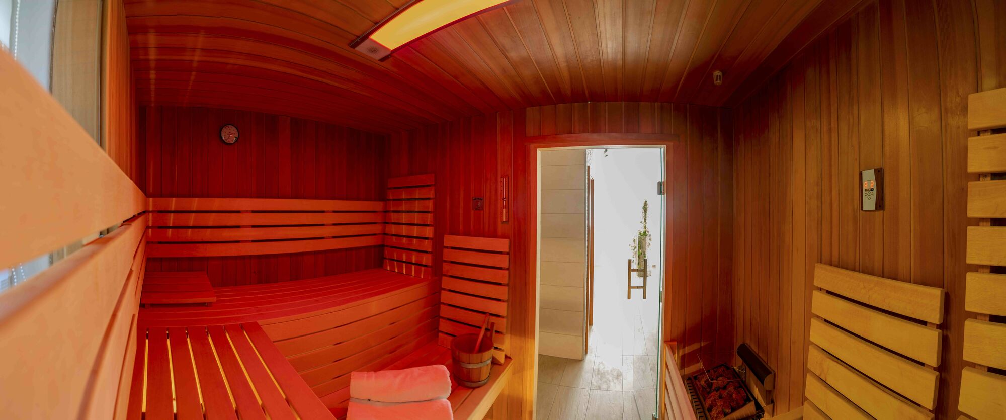Nach einem ereignisreichen, aktiven Tag ist Entspannung das beste für Ihren Körper. Nehmen Sie sich eine kleine Auszeit, wickeln Sie sich in ein kuscheliges Saunatuch und beginnen Sie die Schwitzkur in unserer Sauna mit Farb-Licht-Therapie.