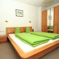 - Schlafraum: helle Holzmöbel, Doppelbett