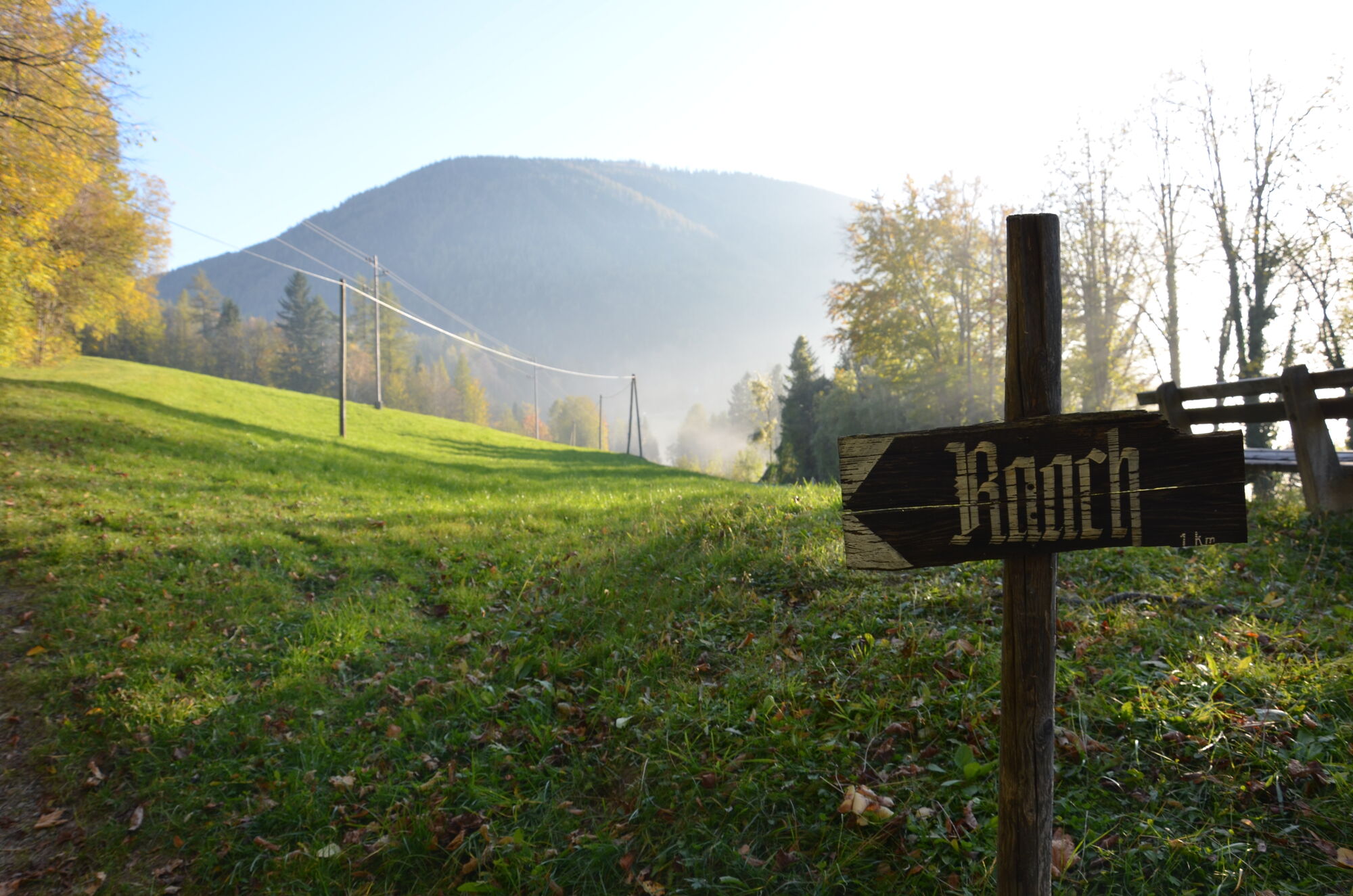 Vom Dorfplatz Raach gehen wir auf der Landesstraße ca. 1 km in Richtung