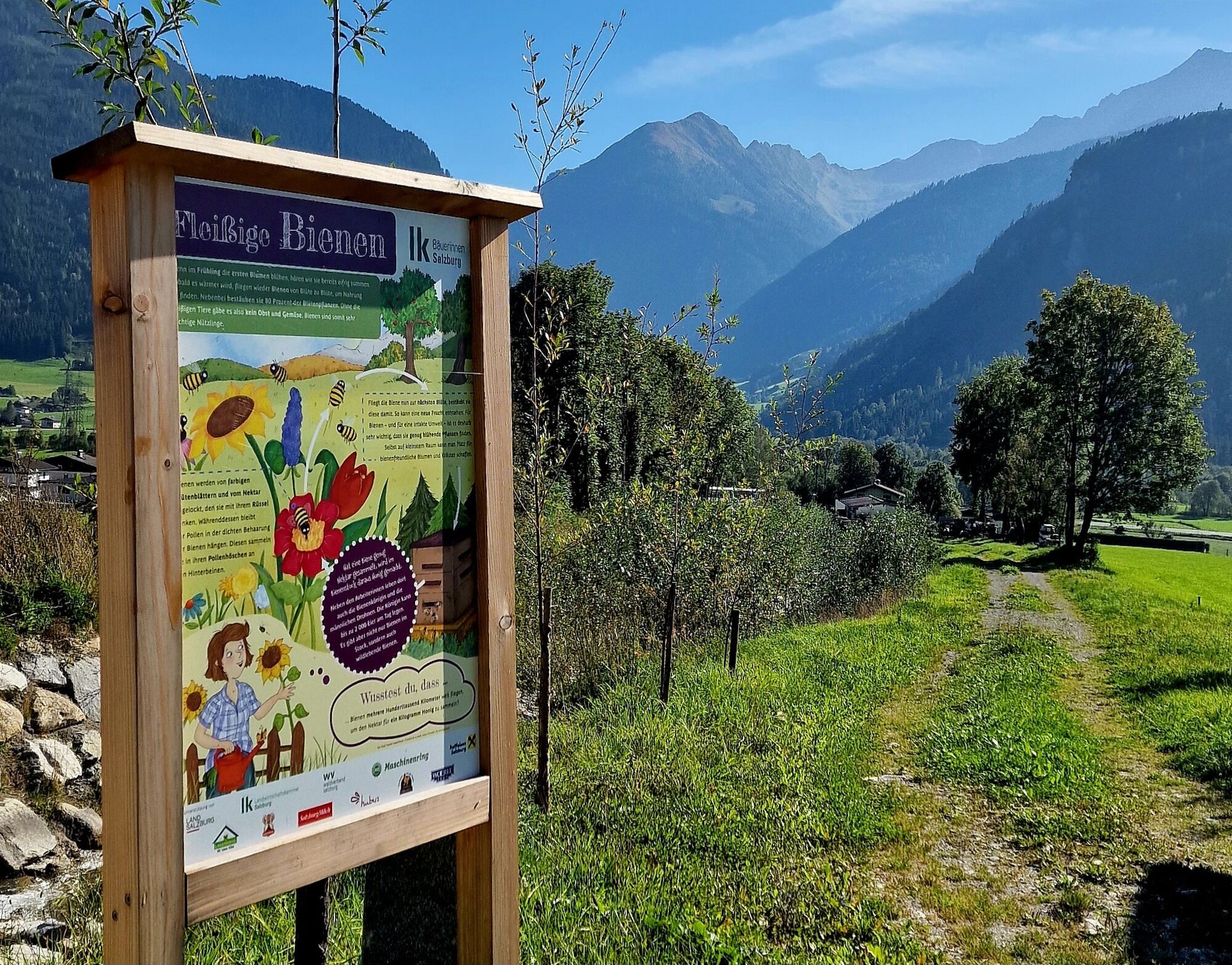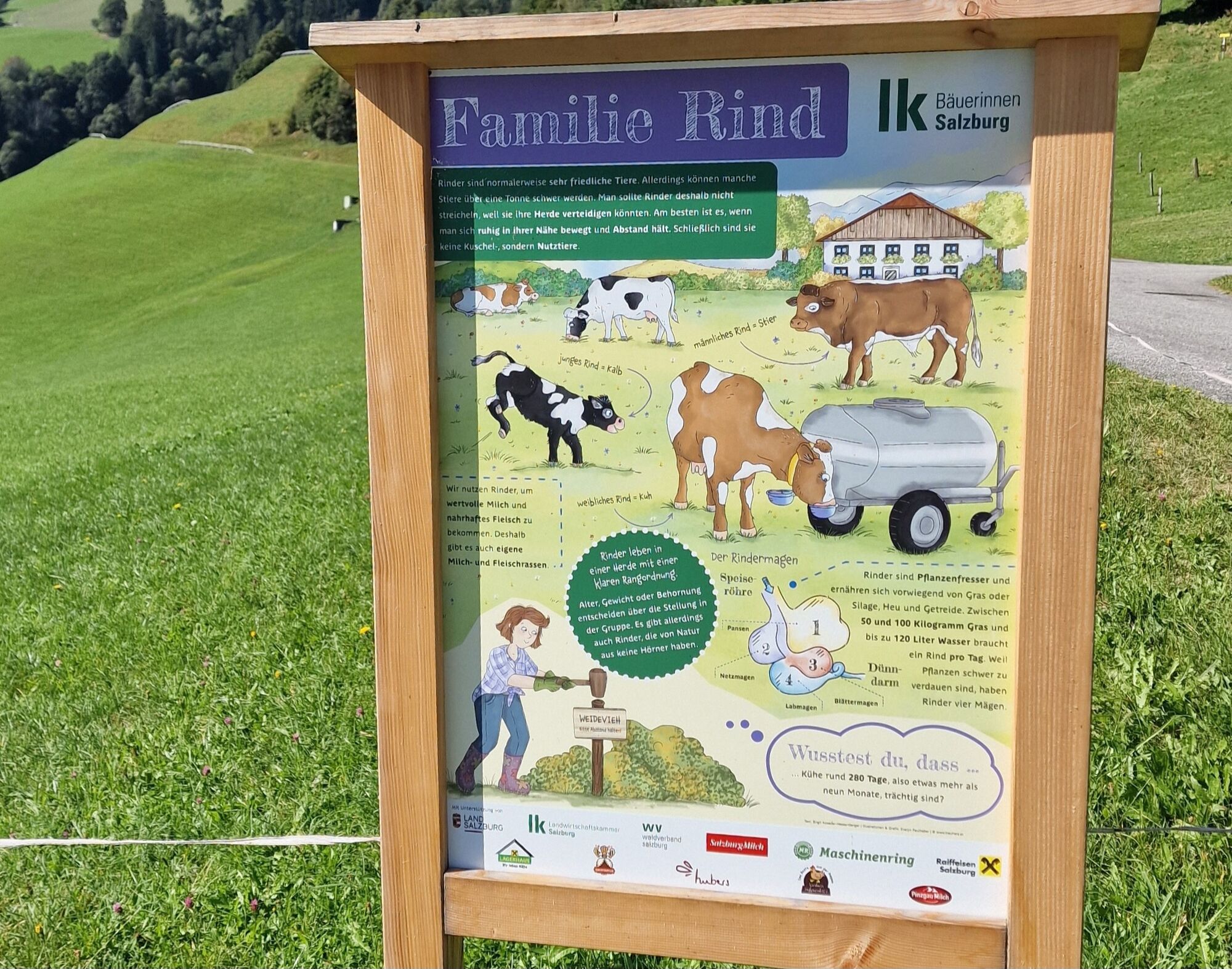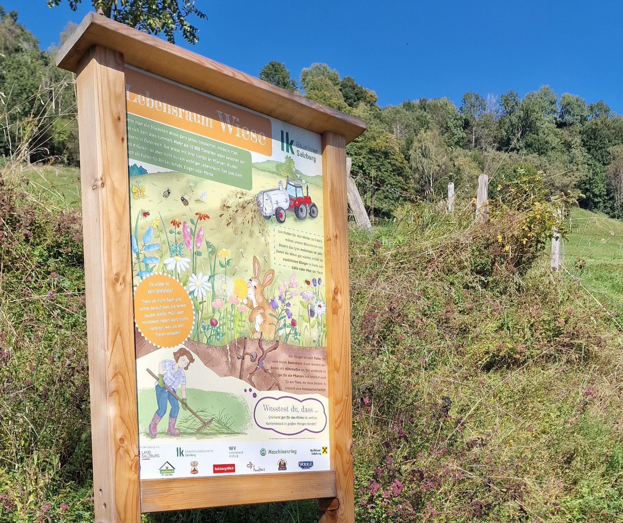 Auf dem 3,1 Kilometer langen Rundweg können Sie 12 kindgerechte und liebevoll illustrierte Schautafeln über heimische Nutztiere und die verschiedenen Tätigkeiten in Land- und Forstwirtschaft entdecken. Sie erfahren mehr über den Arbeitsalltag von Landwirten und dem Leben rund um Haus und Hof. Der Themenweg fungiert als lebendiger Lernort, der das Verständnis für die Bedeutung der heimischen Land- und Forstwirtschaft fördert und das Bewusstsein für nachhaltige Praktiken stärkt.