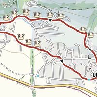 Tourismusverband Uttendorf/Weißsee - entlang des Uttendorfer Baches bergaufwärts bis zum Stefflweg - Litzldorfstraße - Überquerung Manlitzbach - Manlitzweg - Kirchenstraße - Kinosstraße - Alte Bundesstraße - Schulstraße - Tourismusverband Uttendorf/Weißsee