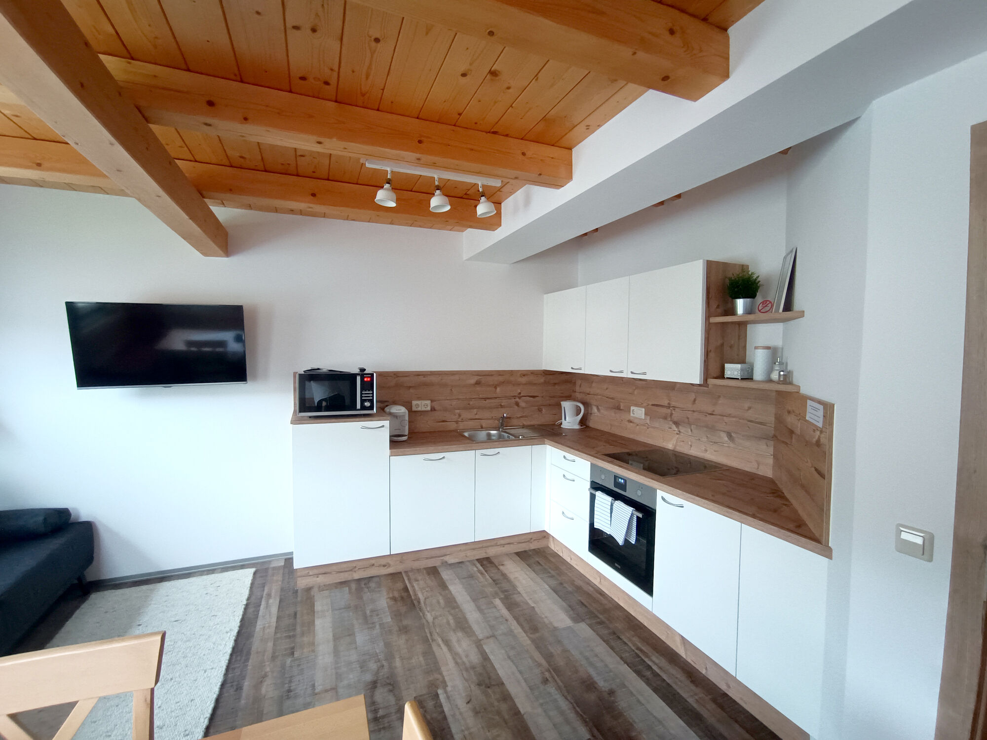 In unseren komfortablen Appartements mit Balkon befinden sich je 2 Doppelbettzimmer sowie Zusatzbetten, DU/WC getrennt, Fernseher, WIFI, Bettwäsche und Handtücher. Die Wohnküche ist komplett mit Geschirr, Geschirrspüler, Kühlschrank, Ceranfeld, teilweise Backrohr oder Mikrowelle mit Grillfunktion, Kaffeemaschine, Wasserkocher, Toaster ausgestattet.