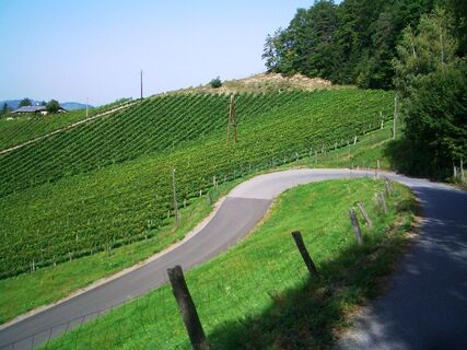 Deshalb müssen Sie die Strasse gerade weiterfahren bis zur Abzweigung Karnerberg-Gamlitz und dann rechts. Nirgens ein Hinweisschild. Wenn Sie nicht abbiegen geht es nach Leutschach.