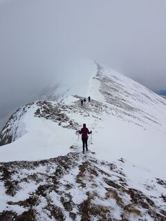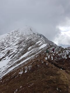 Die Fotos sind von Ende Mai, es kann also auch spät im Frühling noch einmal der Winter vorbei schauen. Auch bei etwas Schnee aber machbar, dann aber besser oben am Grat wieder zurück.