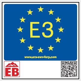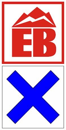 Wegezeichen: Blaues Andreaskreuz / Rote Kennzeichnung EB für den Internationalen Bergwanderweg der Freundschaft von Eisenach nach Budapest.
