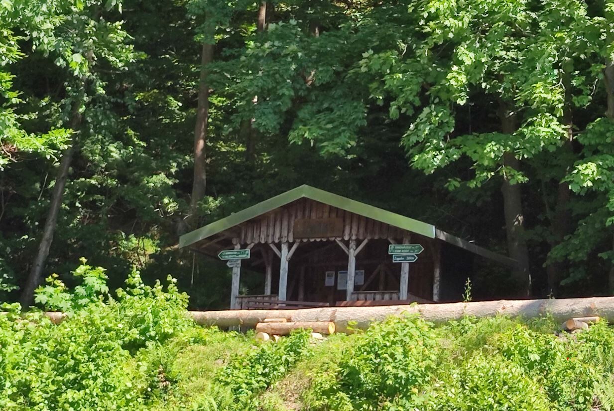 Kurz darauf erreichst du das Luchsloch – ein sagenumwobener Ort, der geheimnisvoll im Schatten der Bäume liegt und seinen Namen überlieferungen nach den unterhalb befindlichen alten Luchslöchern im Berghang verdankt. Ob es hier wirklich einst Luchse gab? Vielleicht. Sicher ist: Die Atmosphäre hier hat etwas Atemberaubendes. Wer still ist, hört nur Wind, Vögel und vielleicht ein Rascheln im Unterholz und erfährt einen weiten Blick ins Saaletal.