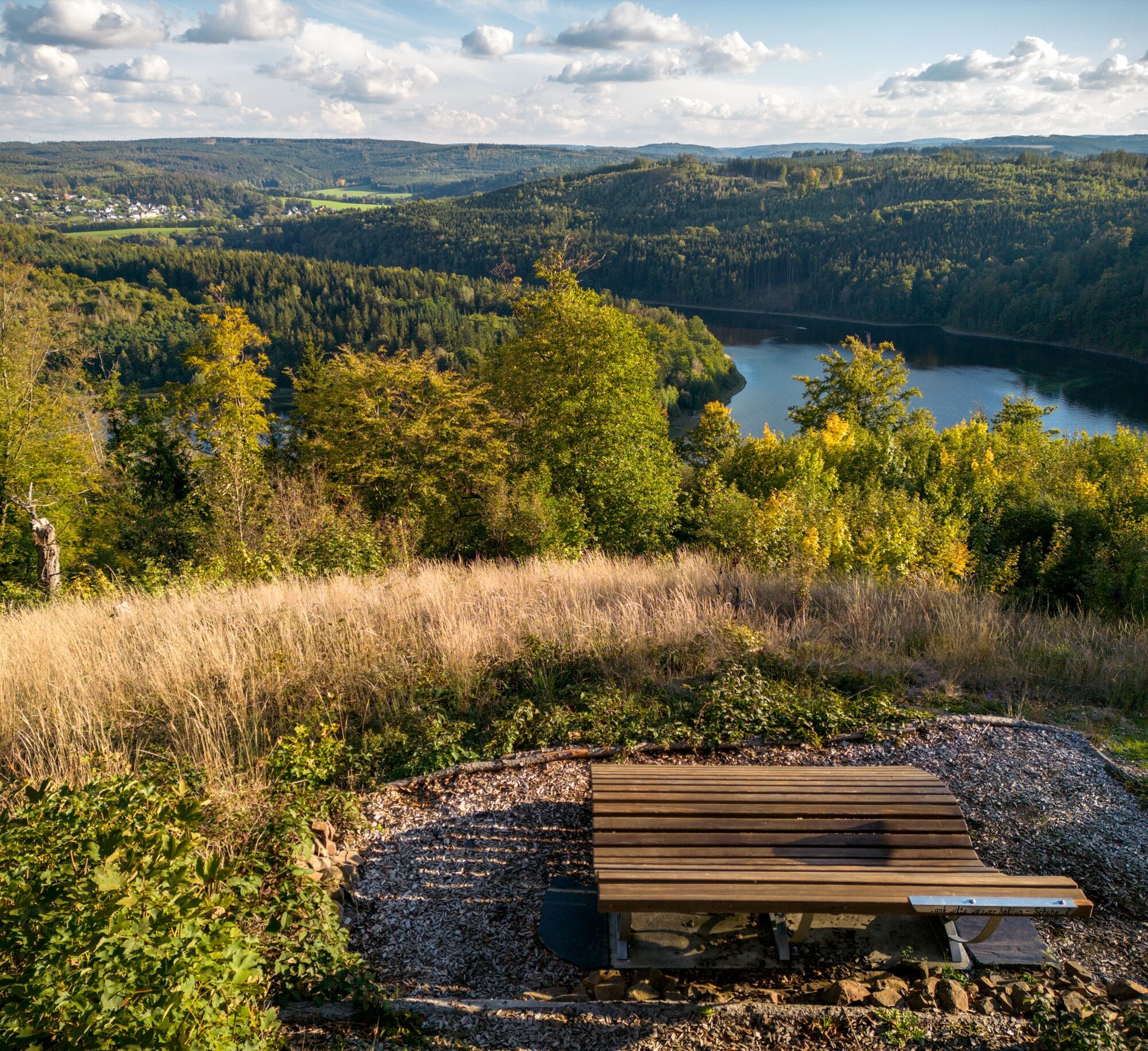 Am Aussichtspunkt Seeblick findet man einen kleinen, feinen Platz mit Sitzbank und freier Sicht auf das südliche Ufer und die Saaleschleife. Hier spürt man, wie nah Wasser und Wald sich begegnen, wie harmonisch sich Natur und Mensch ergänzen.