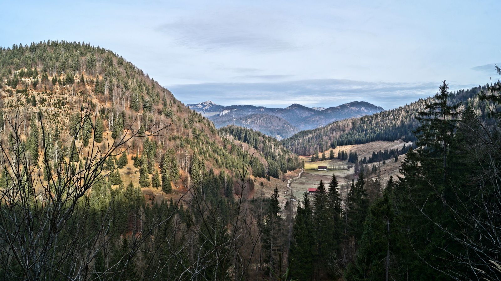 Ein breiter Wanderweg führt uns bei leichter Steigung von der Klausenbergalm Richtung Süden. Der bequeme Weg gewährt uns bei vielen Aussichtspunkten einen wunderschönen Blick in das Hagertal. Gegenüber...