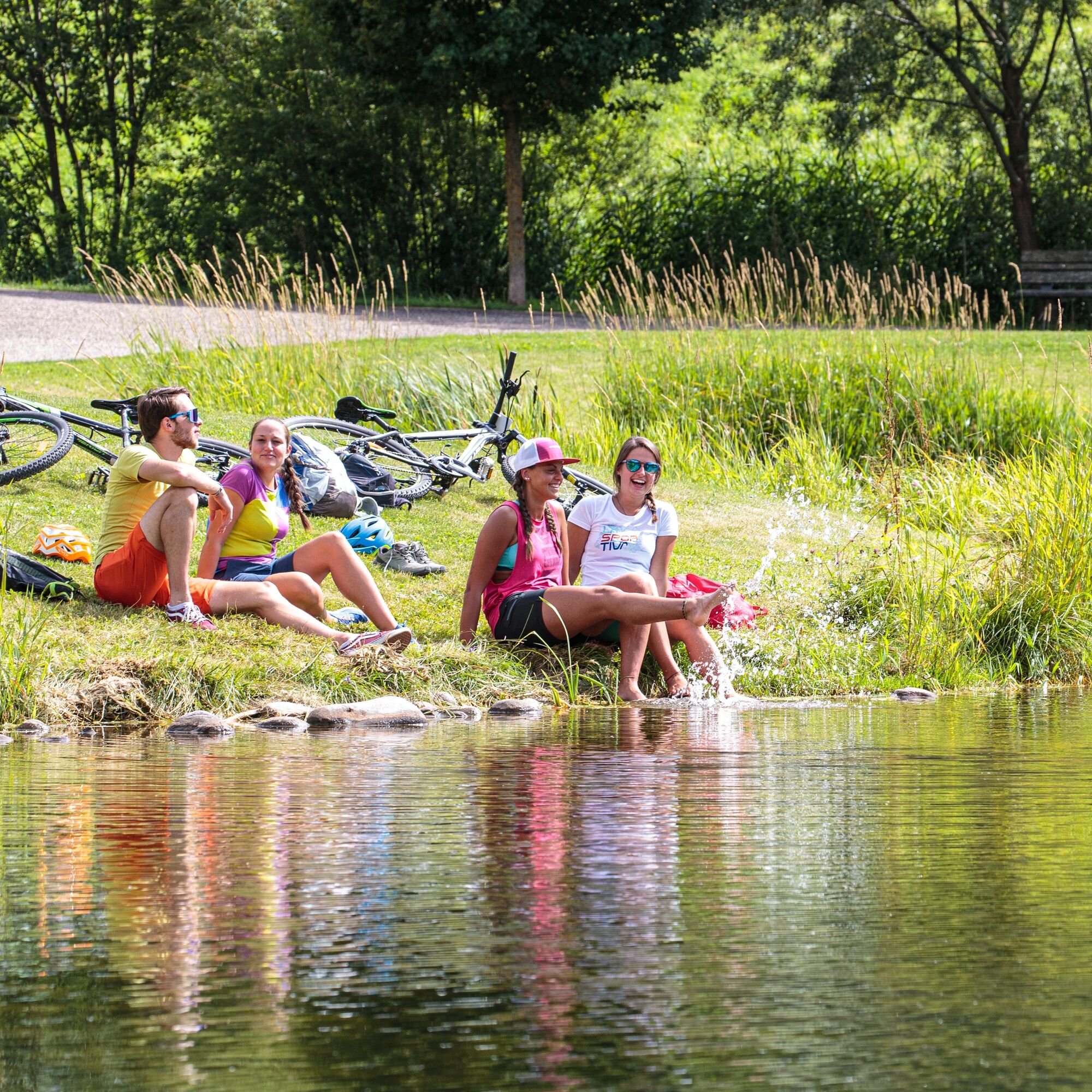 Starting from the main square, descend to the valley floor (limit your speed). Cross the Avisio river and reach the pond in Lago di Tesero. Continue along the cycle route of the Dolomites surrounded by...