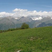 Vom Parkplatz geht man den Erdweg bergauf weiter, am Schild vorbei, das auf die Ortschaft Le Quadre (1479 m) hinweist, dann geradeaus weiter bis zu den Höhenwiesen des Monte Casale.
